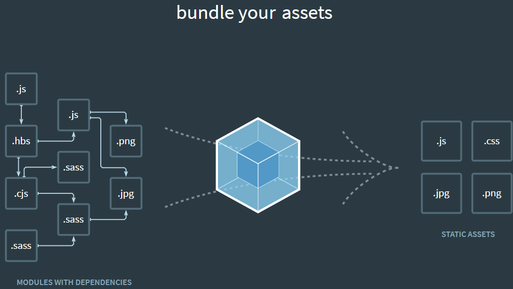안타깝게도 익숙해 보이는 요소가 하나도 없다. 어차피 일을 하는게 아니니까 상관은 없겠지만.. 너무 생소한 것들을 다룰려다보니 뜬구름 잡는 일이 생길 것만 같다. 그래서 이런저런 것들을 살펴보다 webpack 이라는 모듈을 설치 했다. 웹사이트에 필요한 리소스를 번들링 (합쳐)주는 것이다.